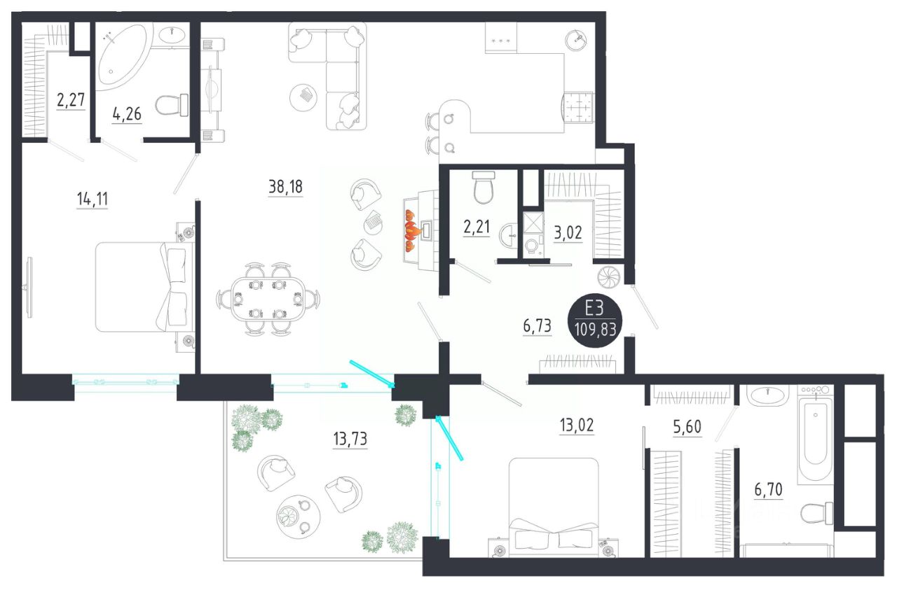 Продаётся 2-комнатная квартира в строящемся доме (Корпус 1), срок сдачи: IV-кв. 2028, общей площадью 109.83 кв.м., на 3 этаже. Новый жилой комплекс "LANGERHALL" от застройщика "ЦСМ" расположен по адресу: г. Тула, Оборонная улица