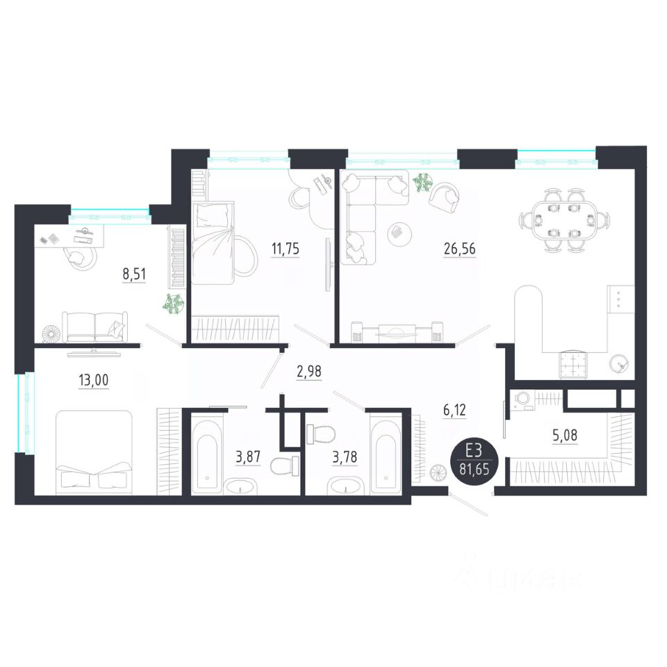 Продаётся 2-комнатная квартира в строящемся доме (Корпус 1), срок сдачи: IV-кв. 2028, общей площадью 81.65 кв.м., на 7 этаже. Новый жилой комплекс "LANGERHALL" от застройщика "ЦСМ" расположен по адресу: г. Тула, Оборонная улица