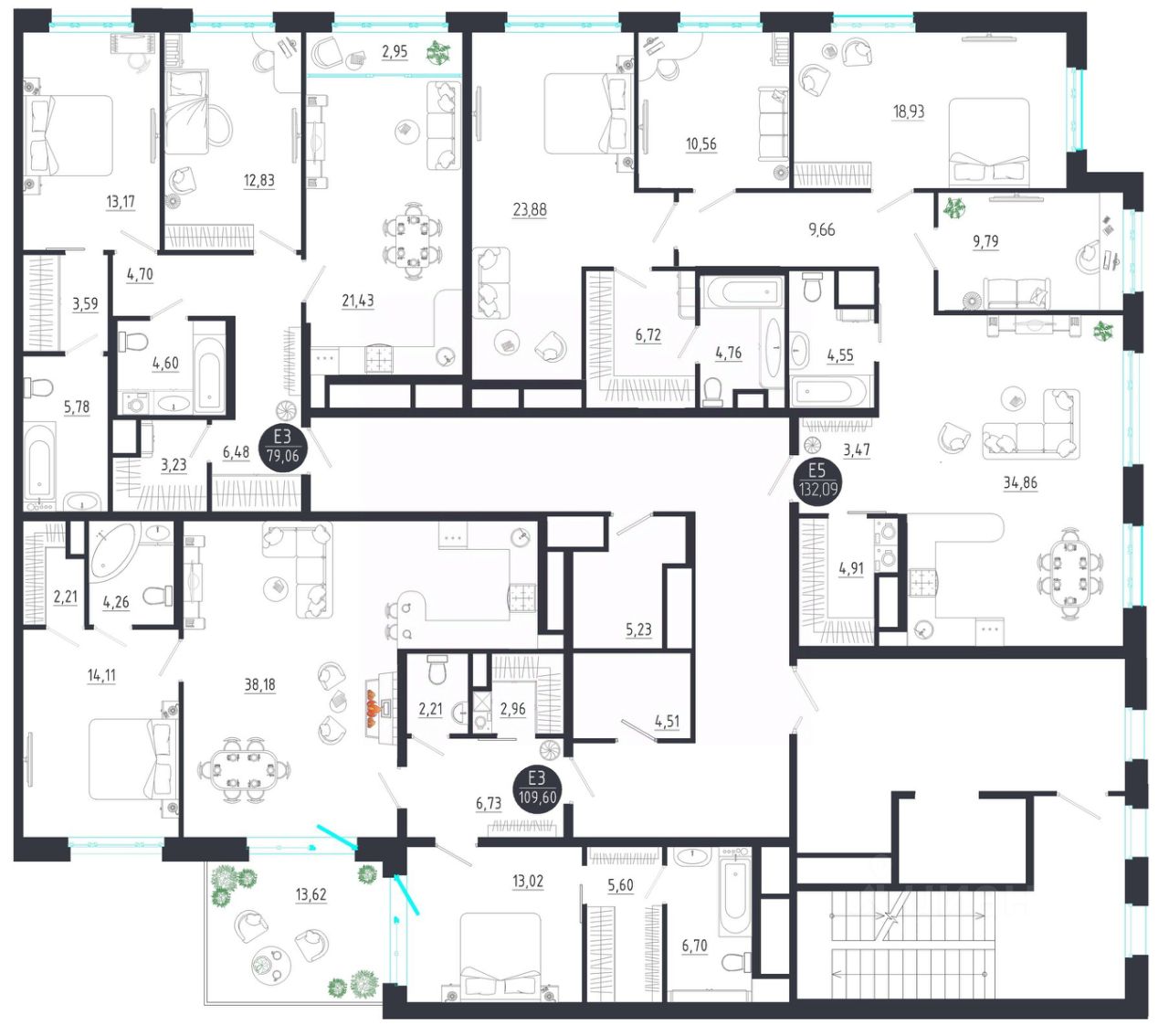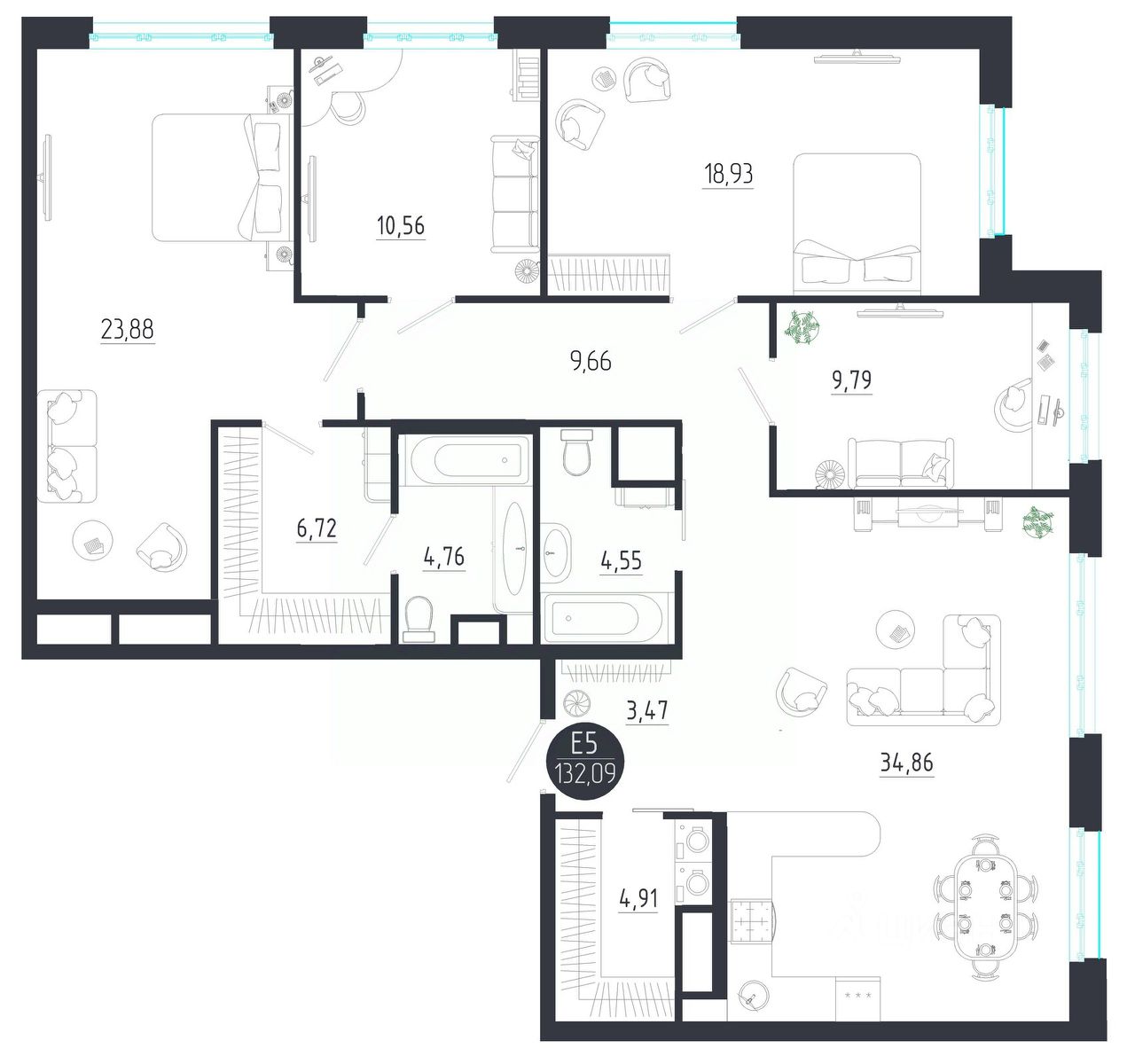 Продаётся 4-комнатная квартира в строящемся доме (Корпус 1), срок сдачи: IV-кв. 2028, общей площадью 132.09 кв.м., на 8 этаже. Новый жилой комплекс "LANGERHALL" от застройщика "ЦСМ" расположен по адресу: г. Тула, Оборонная улица