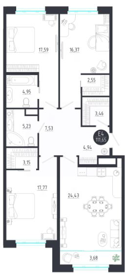 Продаётся 3-комнатная квартира в строящемся доме (Корпус 1), срок сдачи: IV-кв. 2028, общей площадью 111.65 кв.м., на 3 этаже. Новый жилой комплекс "LANGERHALL" от застройщика "ЦСМ" расположен по адресу: г. Тула, Оборонная улица
