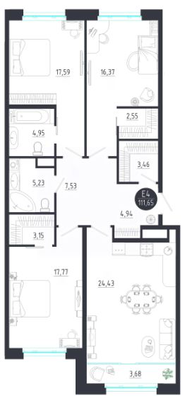 Продаётся 3-комнатная квартира в строящемся доме (Корпус 1), срок сдачи: IV-кв. 2028, общей площадью 111.65 кв.м., на 5 этаже. Новый жилой комплекс "LANGERHALL" от застройщика "ЦСМ" расположен по адресу: г. Тула, Оборонная улица