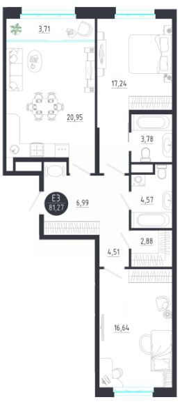 Продаётся 2-комнатная квартира в строящемся доме (Корпус 1), срок сдачи: IV-кв. 2028, общей площадью 81.27 кв.м., на 8 этаже. Новый жилой комплекс "LANGERHALL" от застройщика "ЦСМ" расположен по адресу: г. Тула, Оборонная улица