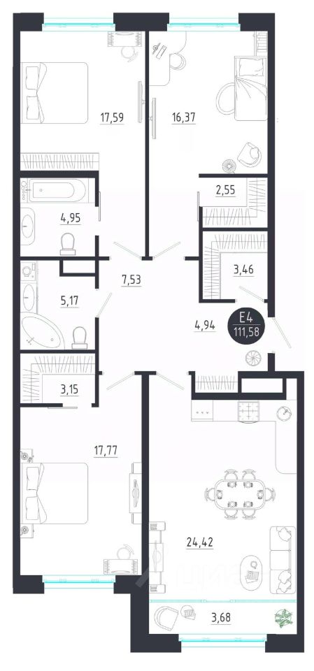 Продаётся 3-комнатная квартира в строящемся доме (Корпус 1), срок сдачи: IV-кв. 2028, общей площадью 111.58 кв.м., на 8 этаже. Новый жилой комплекс "LANGERHALL" от застройщика "ЦСМ" расположен по адресу: г. Тула, Оборонная улица