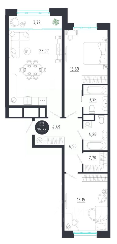 Продаётся 2-комнатная квартира в строящемся доме (Корпус 1), срок сдачи: IV-кв. 2028, общей площадью 75.38 кв.м., на 6 этаже. Новый жилой комплекс "LANGERHALL" от застройщика "ЦСМ" расположен по адресу: г. Тула, Оборонная улица