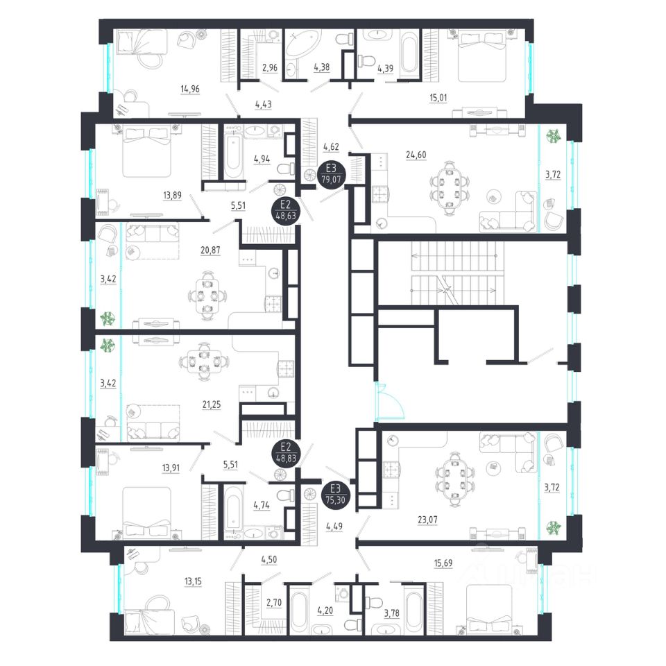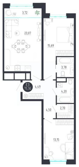 Продаётся 2-комнатная квартира в строящемся доме (Корпус 1), срок сдачи: IV-кв. 2028, общей площадью 75.3 кв.м., на 8 этаже. Новый жилой комплекс "LANGERHALL" от застройщика "ЦСМ" расположен по адресу: г. Тула, Оборонная улица