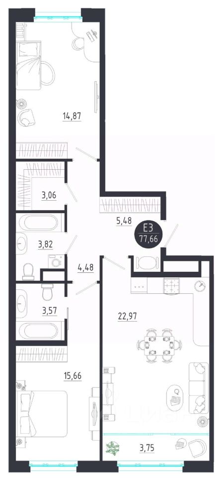 Продаётся 2-комнатная квартира в строящемся доме (Корпус 1), срок сдачи: IV-кв. 2028, общей площадью 77.66 кв.м., на 6 этаже. Новый жилой комплекс "LANGERHALL" от застройщика "ЦСМ" расположен по адресу: г. Тула, Оборонная улица
