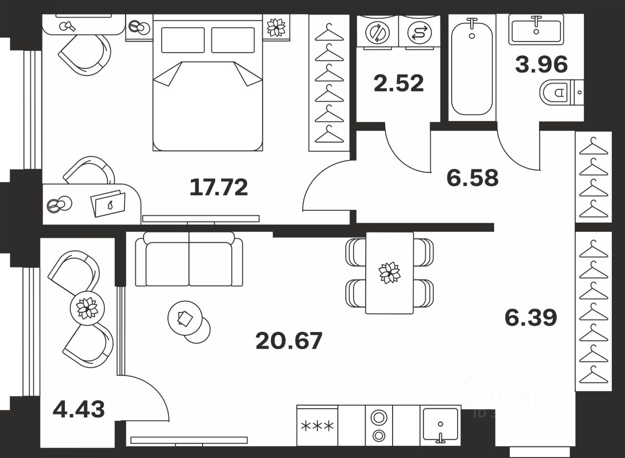 Жилая площадь17,7 м²