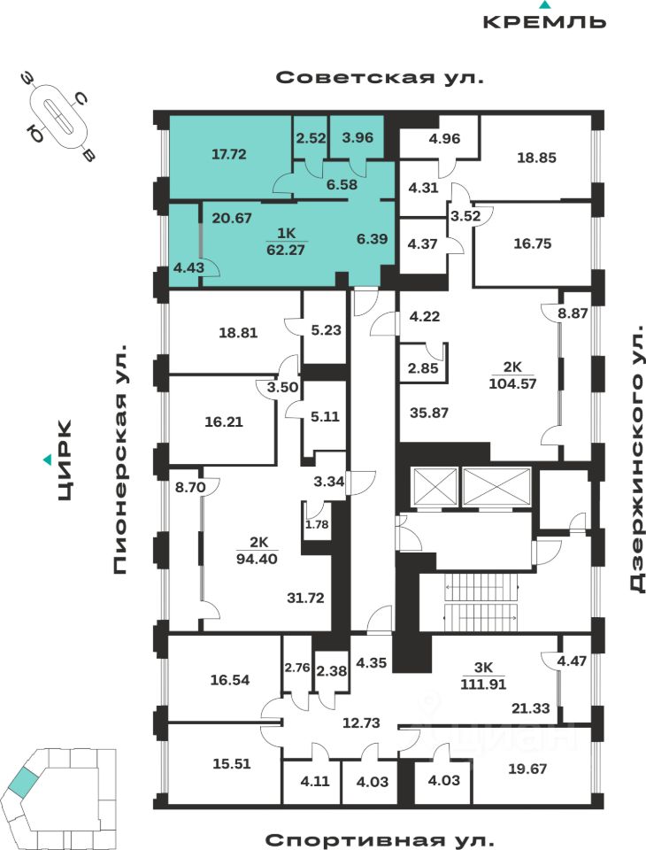 Продается 1-комн. квартира, 62,27 м²