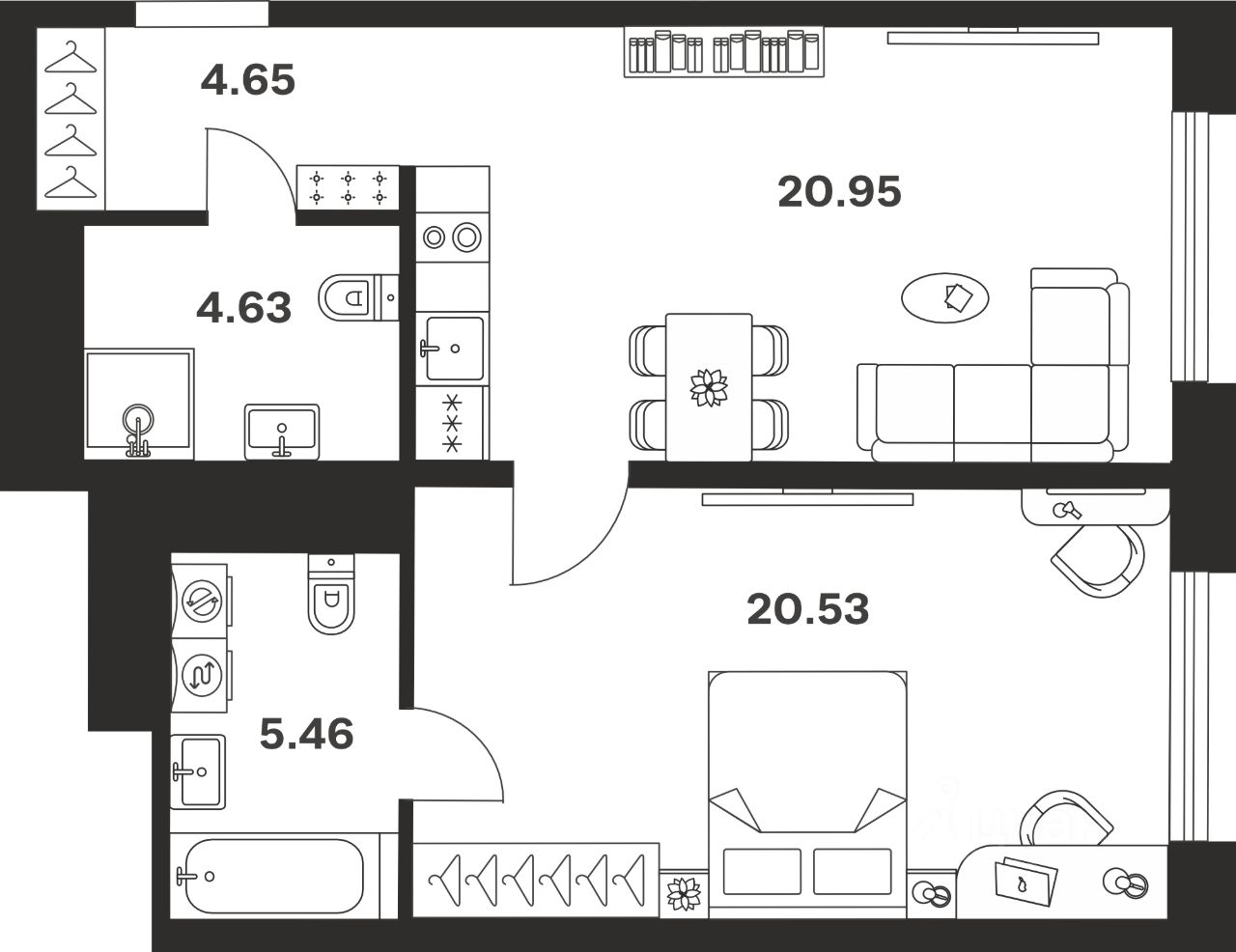 Жилая площадь20,5 м²