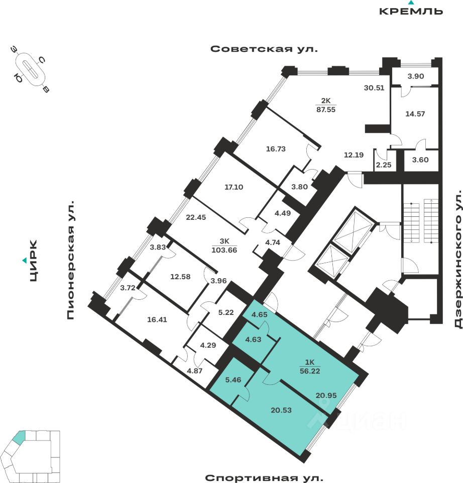 Общая площадь56,22 м²