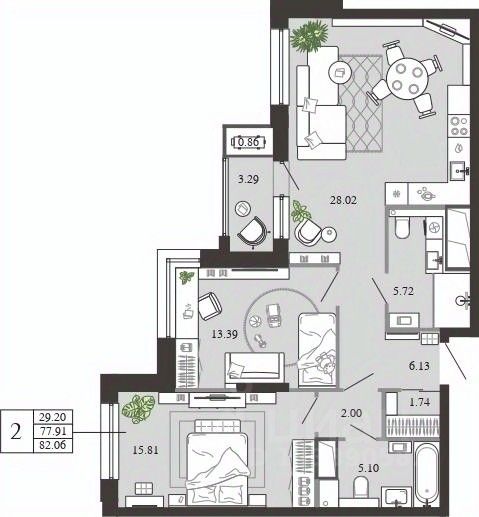 Общая площадь82,06 м²