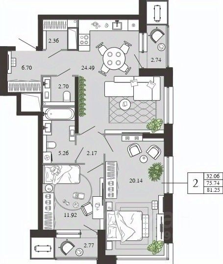 Общая площадь81,25 м²