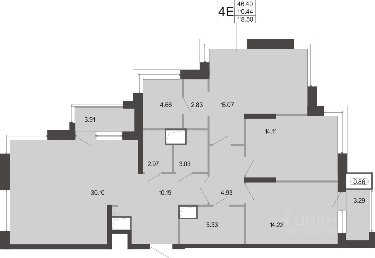 Общая площадь118,5 м²