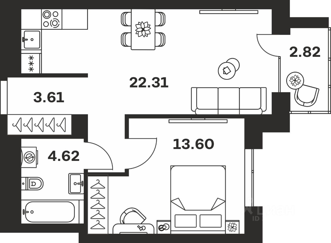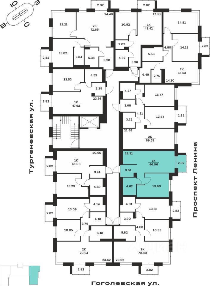 Общая площадь46,96 м²