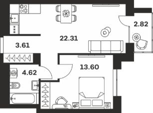 Жилая площадь13,6 м²