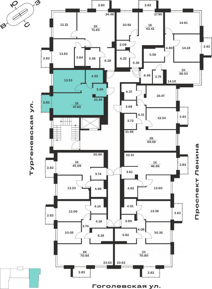 Продается 1-комн. квартира, 47,63 м²