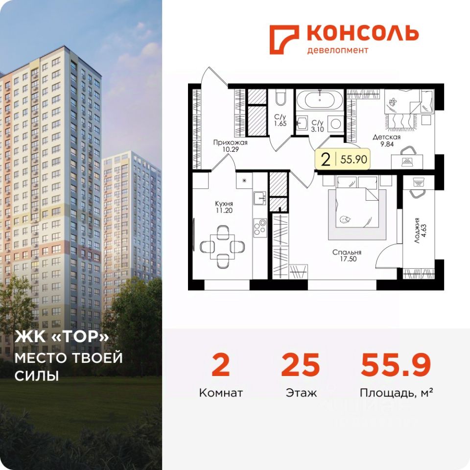 55,9 м²