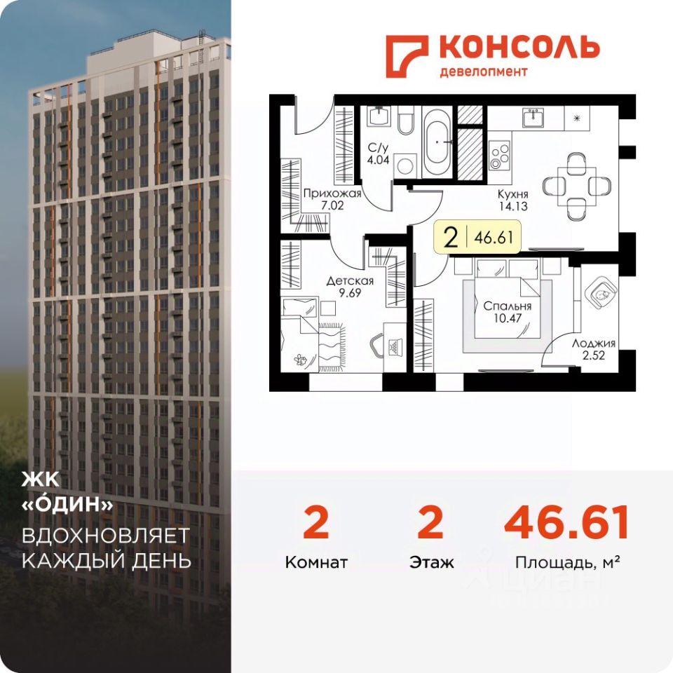 Продается двухкомнатная квартира 5 с чистовой отделкой в ЖК "ОДИН" от застройщика | Чистовая отделка | Семейная ипотека 3,5%