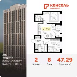 Продается двухкомнатная квартира 74 без отделки в ЖК "ОДИН" от застройщика | Чистовая отделка | Семейная ипотека 3,5%