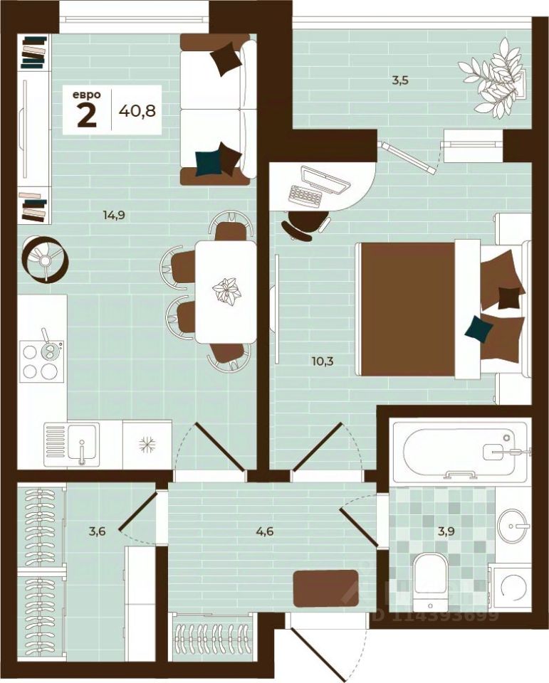 Продаётся 2-комнатная квартира в строящемся доме (Дом 28), срок сдачи: I-кв. 2027, общей площадью 40.8 кв.м., на 10 этаже. Расположение, транспортная доступность Новый жилой комплекс "Юго-Восточный" строится в Туле, в 3,5 км от центра города. Благодаря удачным транспортным развязкам, автолюбители смогут доехать до центральных кварталов примерно за 5 10 минут, составив наиболее быстрый и удобный маршрут с учетом загруженности дорог. Проблем с мобильностью не возникнет и у пассажиров общественного транспорта. Рядом с домом расположены остановки автобусов и маршрутных такси, которые быстро довезут до любого района города. Так, чтобы добраться до центра, следует дойти пешком до остановки "Медтехника", где останавливается маршрутное такси, доезжающее до центральных кварталов всего за 7 8 минут. Инфраструктура Район, где возводится новый жилой комплекс, активно застраивается, и сеть инфраструктуры сов временем будет расширяться. Но и сейчас все, что нужно для комфортной жизни в городе, находится недалеко от жилого комплекса. В шаговой доступности расположены продуктовые магазины: "Виктория", "Овощи-фрукты", Магазин рыбы и мяса птицы, магазин мяса и колбас "У Максима", супермаркеты "Дикси", "Пятерочка", "SPAR". Неподалеку находится гипермаркет "Линия", крупный торговый центр, в котором расположены отделения банков, гипермаркет "Глобус", салон оптики, мебельный магазин "Столплит", зоомагазин "Четыре лапы" и пр. В соседнем здании находится строительный гипермаркет "Леруа Мерлен", за ним крупный магазин товаров для спорта, туризма и активного отдыха "Декатлон".Недалеко от жилого комплекса открыты кафе и рестораны: кофейня "Bonape", пиццерия "Культура", кафе "Вкуснов", кафе быстрого обслуживания "Rapido", ресторан "У фонтана" и пр.В районе есть аптеки, поликлиники, диагностические центры. В шаговой доступности от жилого комплекса расположено несколько детских садиков, в том числе, садик комбинированного вида "Алые паруса". Есть дошкольные отделения, входящие в состав образовательных центров, Центры развития ребенка. Поблизости расположены средние школы, в том числе, школа для детей с ОВЗ. Рядом с жилым комплексом находится Тульская Духовная Семинария и Суворовское училище. Надежность застройщик: достраивает объект ООО Ин-Групп.АрхитектураЖилой комплекс будет представлен 19 монолитно-кирпичными корпусами переменной этажности, выполненными в едином архитектурном стиле. При строительстве ЖК "Юго-Восточный" применяются современные материалы высокого качества, которые обеспечивают надежность домов и комфортный микроклимат в помещениях. Каждая секция оснащается современными лифтами. Помещения общего пользования отделываются экологичными материалами. Квартиры предлагаются однокомнатные (от 43,9 кв. м), двухкомнатные (от 45,8 кв. м), трехкомнатные (от 60,4 кв. м) и четырехкомнатные (от 87,2 кв. м), а также уютные студии (от 28,9 кв. м).На внутренней территории проводится комплексное благоустройство: озеленение, организация игровых площадок, мест для отдыха и зан