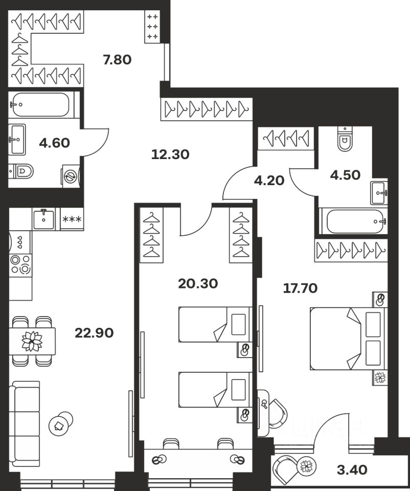 Общая площадь97,7 м²