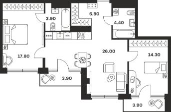 Предчистовая — остаётся установить сантехнику, розетки, двери и навести красоту: поклеить обои и уложить на пол покрытие