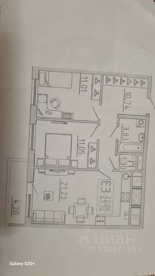 17 этажного монолитного дома,общ.пл.64 м.ка,