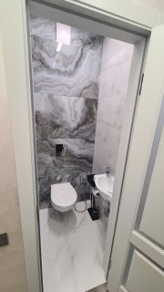 установлен теплый пол ванна туалет, балкон, установлена современная кухня, фасады agt, петли blum,