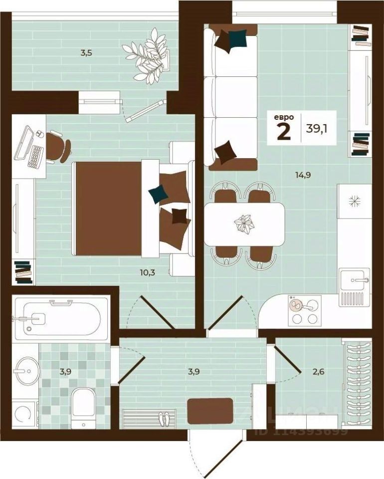 Продаётся 2-комнатная квартира в строящемся доме (Дом 28), срок сдачи: I-кв. 2027, общей площадью 39.1 кв.м., на 12 этаже. Расположение, транспортная доступность Новый жилой комплекс "Юго-Восточный" строится в Туле, в 3,5 км от центра города. Благодаря удачным транспортным развязкам, автолюбители смогут доехать до центральных кварталов примерно за 5 10 минут, составив наиболее быстрый и удобный маршрут с учетом загруженности дорог. Проблем с мобильностью не возникнет и у пассажиров общественного транспорта. Рядом с домом расположены остановки автобусов и маршрутных такси, которые быстро довезут до любого района города. Так, чтобы добраться до центра, следует дойти пешком до остановки "Медтехника", где останавливается маршрутное такси, доезжающее до центральных кварталов всего за 7 8 минут. Инфраструктура Район, где возводится новый жилой комплекс, активно застраивается, и сеть инфраструктуры сов временем будет расширяться. Но и сейчас все, что нужно для комфортной жизни в городе, находится недалеко от жилого комплекса. В шаговой доступности расположены продуктовые магазины: "Виктория", "Овощи-фрукты", Магазин рыбы и мяса птицы, магазин мяса и колбас "У Максима", супермаркеты "Дикси", "Пятерочка", "SPAR". Неподалеку находится гипермаркет "Линия", крупный торговый центр, в котором расположены отделения банков, гипермаркет "Глобус", салон оптики, мебельный магазин "Столплит", зоомагазин "Четыре лапы" и пр. В соседнем здании находится строительный гипермаркет "Леруа Мерлен", за ним крупный магазин товаров для спорта, туризма и активного отдыха "Декатлон".Недалеко от жилого комплекса открыты кафе и рестораны: кофейня "Bonape", пиццерия "Культура", кафе "Вкуснов", кафе быстрого обслуживания "Rapido", ресторан "У фонтана" и пр.В районе есть аптеки, поликлиники, диагностические центры. В шаговой доступности от жилого комплекса расположено несколько детских садиков, в том числе, садик комбинированного вида "Алые паруса". Есть дошкольные отделения, входящие в состав образовательных центров, Центры развития ребенка. Поблизости расположены средние школы, в том числе, школа для детей с ОВЗ. Рядом с жилым комплексом находится Тульская Духовная Семинария и Суворовское училище. Надежность застройщик: достраивает объект ООО Ин-Групп.АрхитектураЖилой комплекс будет представлен 19 монолитно-кирпичными корпусами переменной этажности, выполненными в едином архитектурном стиле. При строительстве ЖК "Юго-Восточный" применяются современные материалы высокого качества, которые обеспечивают надежность домов и комфортный микроклимат в помещениях. Каждая секция оснащается современными лифтами. Помещения общего пользования отделываются экологичными материалами. Квартиры предлагаются однокомнатные (от 43,9 кв. м), двухкомнатные (от 45,8 кв. м), трехкомнатные (от 60,4 кв. м) и четырехкомнатные (от 87,2 кв. м), а также уютные студии (от 28,9 кв. м).На внутренней территории проводится комплексное благоустройство: озеленение, организация игровых площадок, мест для отдыха и зан