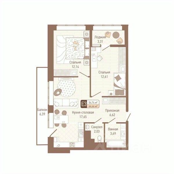 Продаётся 2-комнатная квартира в строящемся доме (Корпус 3), срок сдачи: IV-кв. 2025, общей площадью 58.32 кв.м., на 8 этаже. РАСПОЛОЖЕНИЕ