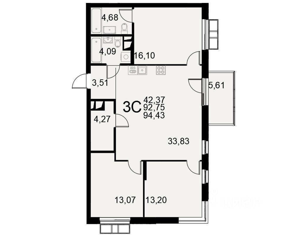Продаётся 3-комнатная квартира в строящемся доме (Дом 8 (секции 1-5)), срок сдачи: III-кв. 2026, общей площадью 92.75 кв.м., на 3 этаже. Жилой квартал на Хлебной "Таланты" - союз индивидуальной архитектуры и традиций качества постройки, вдохновленный наследием русской культуры: литературой, живописью и музыкой. Современный и несущий в себе динамику обновления, он органично вписан в привычный образ жизни одного из самых исторических истоков города.