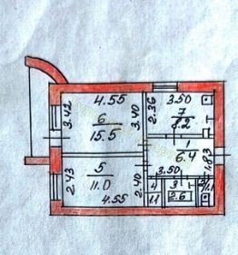 Комнаты: Раздельные 11 и 15,5 кв. м.
