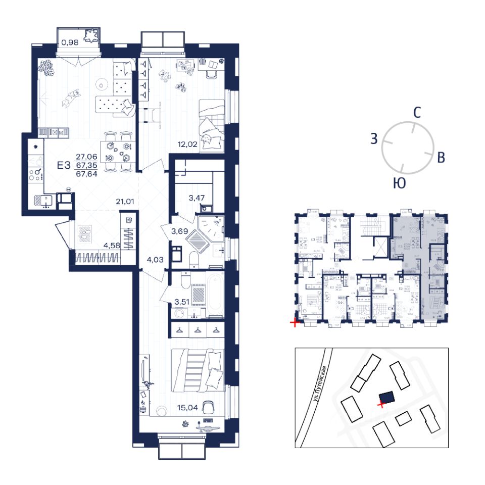 Общая площадь67,64 м²