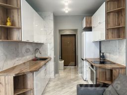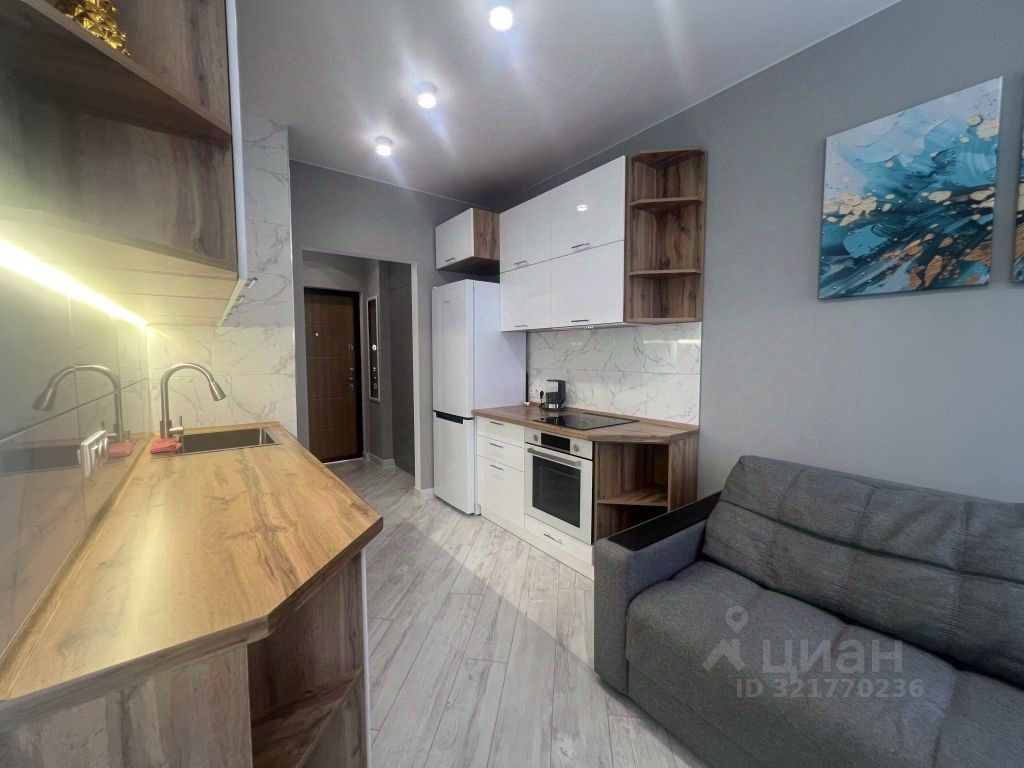 В студии есть прихожая, зона кухни, зона гостинной, спальное место и санузел. Все фотографии реальные. Ежедневный показ по согласованию.