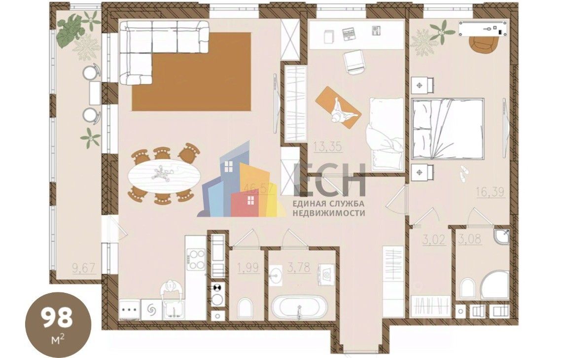 Номер в базе: 53308. Продается квартира премиум-класса площадью 98 кв м в клубном доме Пушкин.