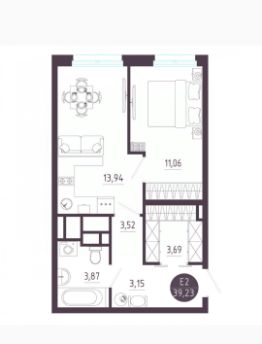 Арт. 111922744 Продается от застройщика ЕВРО 2; 39,34 кв м дом "Ежевика" в ЖК "Пряничная Слобода".