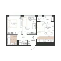 Продаётся 2-комнатная квартира в строящемся доме (Дом 12), срок сдачи: IV-кв. 2026, общей площадью 50.67 кв.м., на 1 этаже. Живой район ОГНИ" - новый проект комфорт-класса на природе. Он расположен в Пролетарском районе города в окружении природы - в долине, где нет плотной застройки, где много неба и звезд. Если посмотреть на район сверху, то его генплан - это созвездия на карте города.