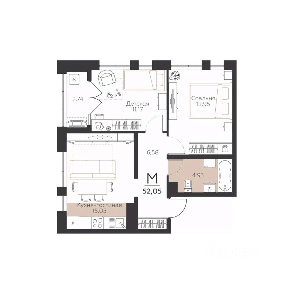Продаётся 2-комнатная квартира в строящемся доме (Дом 11), срок сдачи: II-кв. 2026, общей площадью 52.05 кв.м., на 4 этаже. Живой район ОГНИ" - новый проект комфорт-класса на природе. Он расположен в Пролетарском районе города в окружении природы - в долине, где нет плотной застройки, где много неба и звезд. Если посмотреть на район сверху, то его генплан - это созвездия на карте города.