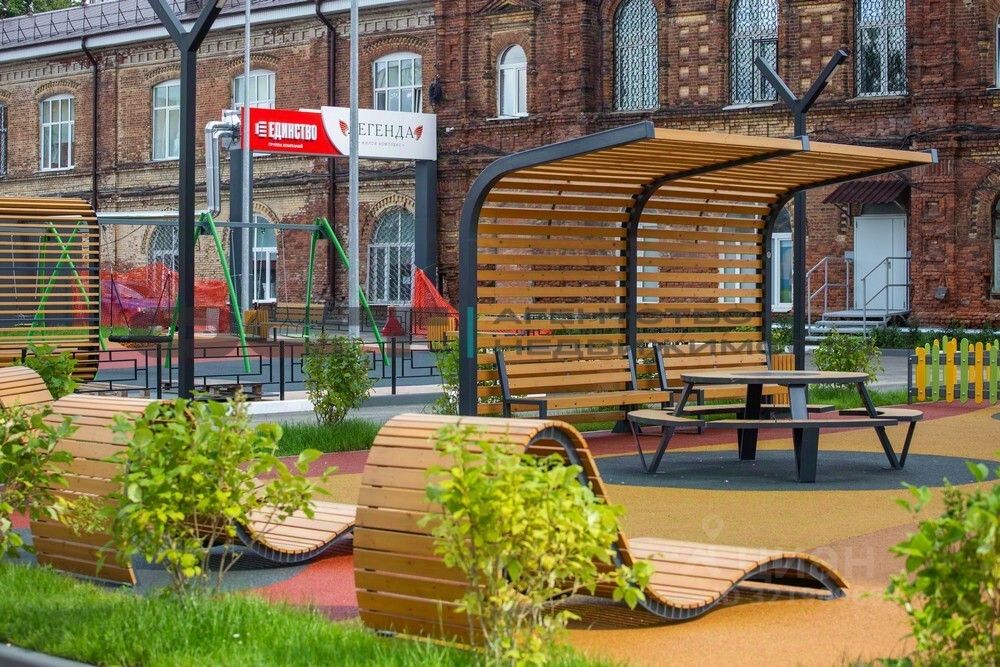 Место для отдыха и развлечений: детская и спортивная площадки. Здесь комфортно и безопасно гулять с детьми, читать книгу или обмениваться новостями с соседями