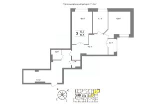 Чистовой ремонт.Поклеены обои.Уложен линолеум, установлена сантехника.Разведена электрика.Натяжные потолки.