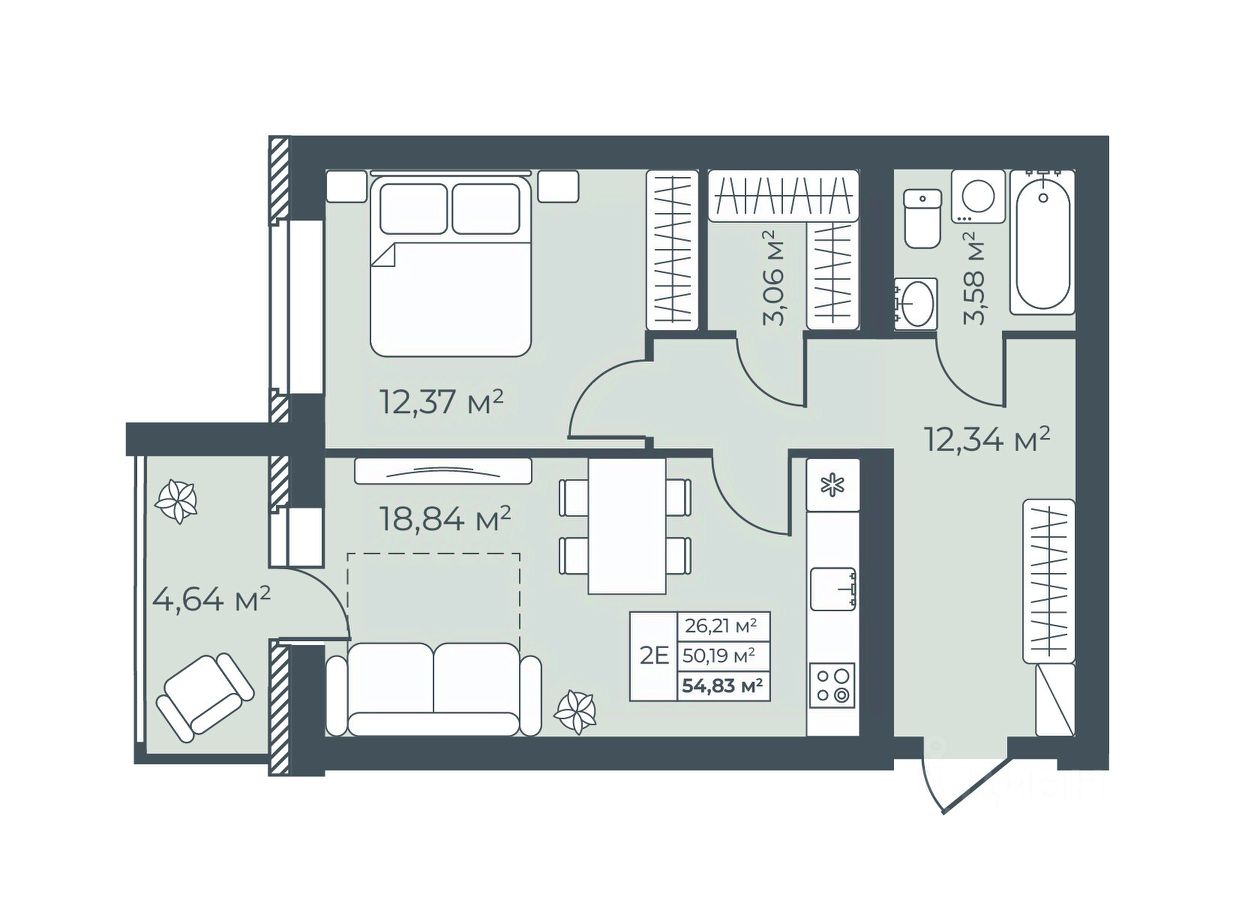 Общая площадь54,83 м²