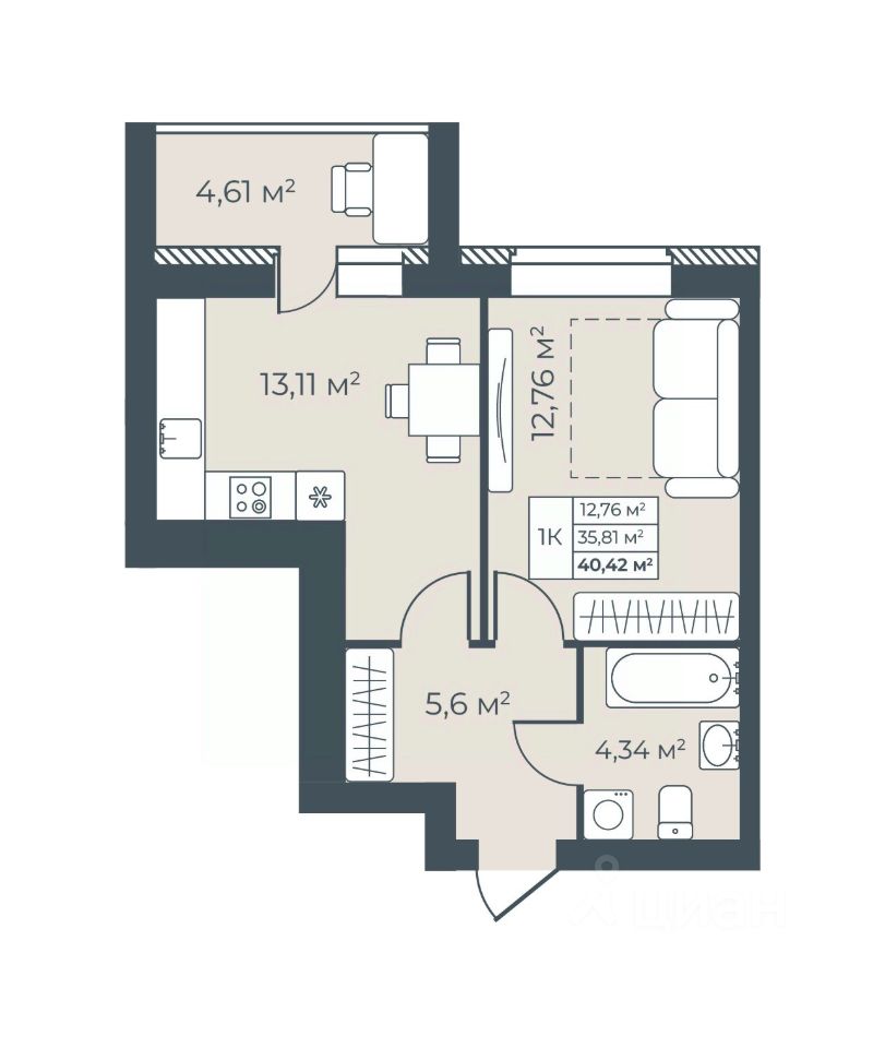 Общая площадь40,42 м²