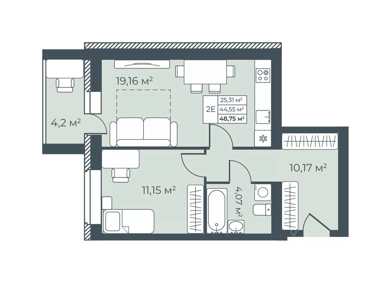 Общая площадь48,75 м²