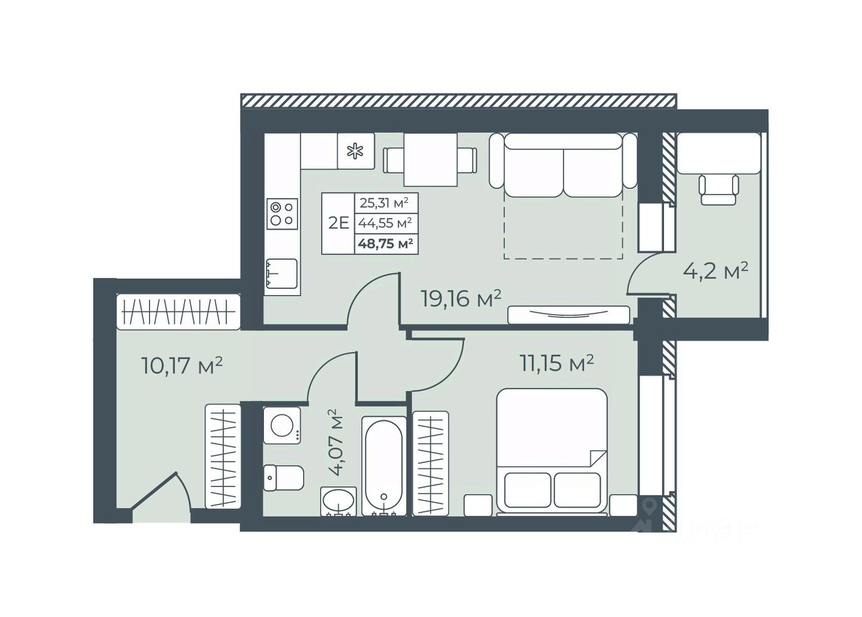 Общая площадь48,75 м²