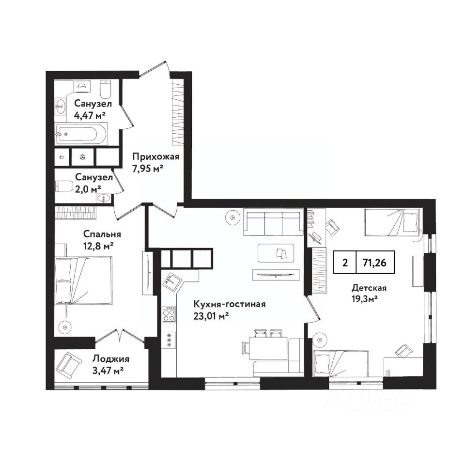 Продаётся 2-комнатная квартира в сданном доме (Дом 24к4), срок сдачи: II-кв. 2023, общей площадью 74.8 кв.м., на 25 этаже. ЖК "Фамилия" — ваш путь к комфортной жизни в Туле начинается здесь!