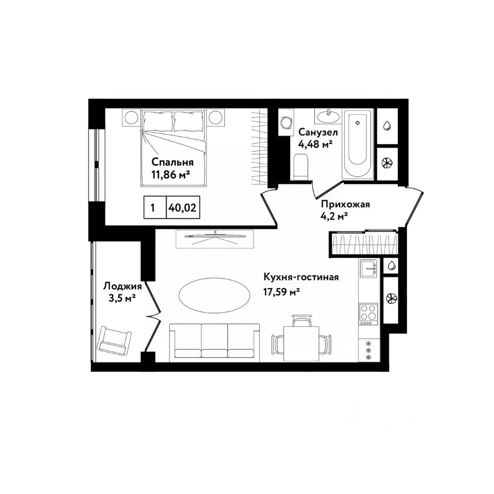 Продаётся 1-комнатная квартира в сданном доме (Дом 24к4), срок сдачи: II-кв. 2023, общей площадью 43.8 кв.м., на 2 этаже. ЖК "Фамилия" — ваш путь к комфортной жизни в Туле начинается здесь!