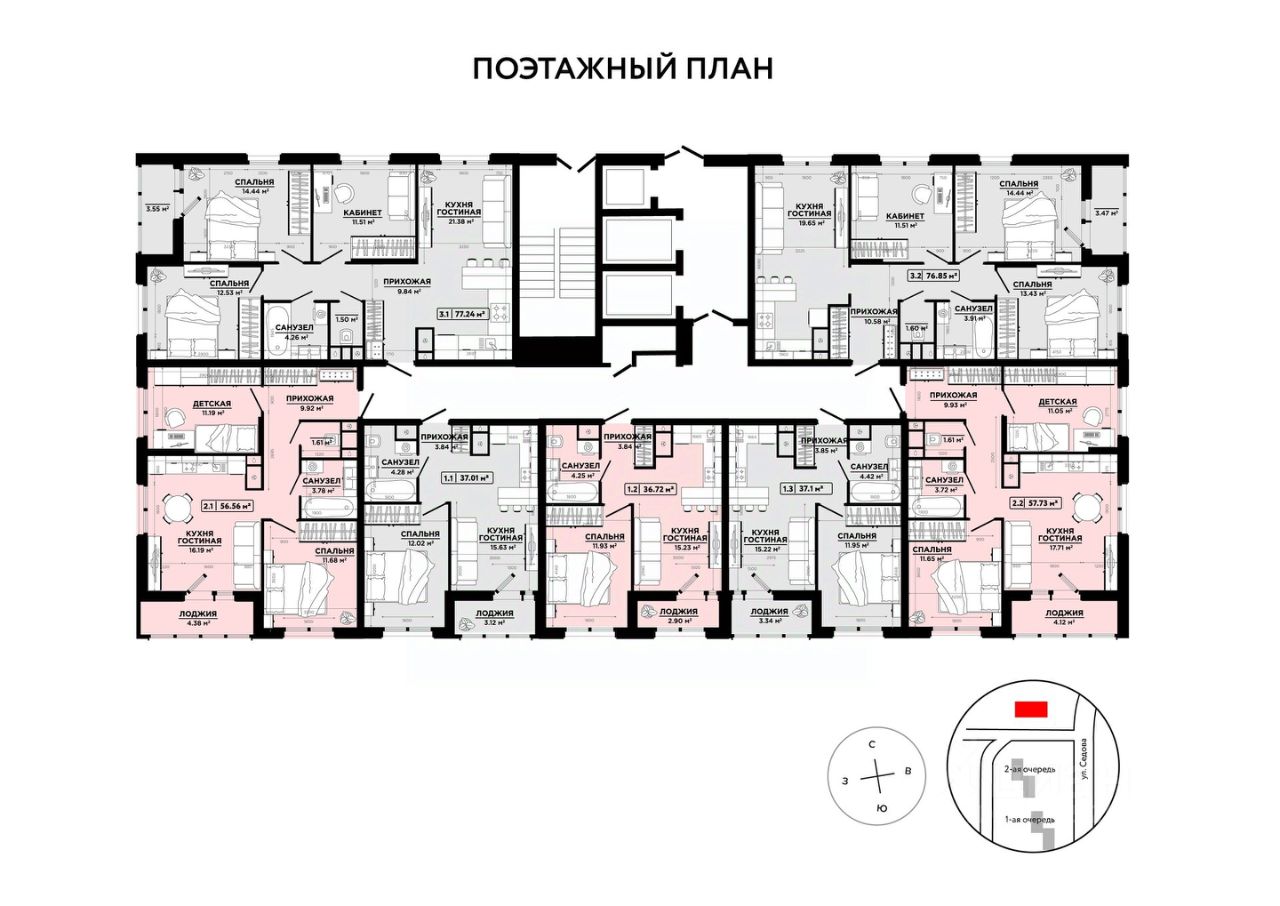 Продаётся 3-комнатная квартира в строящемся доме (3я очередь строительства, ЖК Фамилия), срок сдачи: IV-кв. 2026, общей площадью 77.3 кв.м., на 19 этаже. ЖК "Фамилия" — ваш путь к комфортной жизни в Туле начинается здесь!