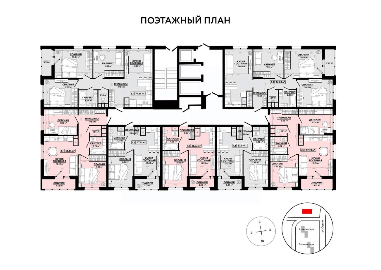 Продаётся 3-комнатная квартира в строящемся доме (3я очередь строительства, ЖК Фамилия), срок сдачи: IV-кв. 2026, общей площадью 77.3 кв.м., на 22 этаже. ЖК "Фамилия" — ваш путь к комфортной жизни в Туле начинается здесь!