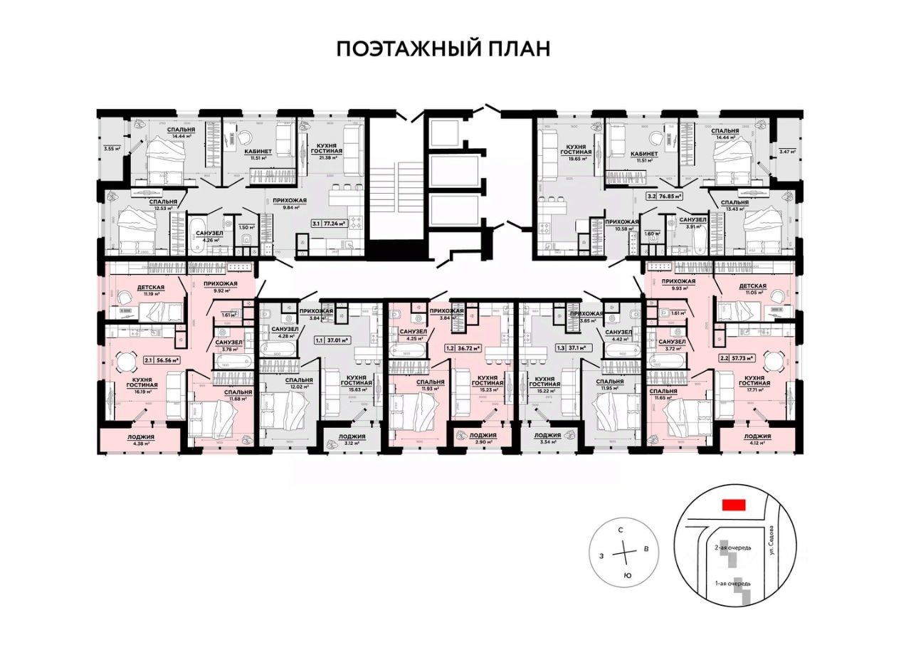 Продаётся 3-комнатная квартира в строящемся доме (3я очередь строительства, ЖК Фамилия), срок сдачи: IV-кв. 2026, общей площадью 77.9 кв.м., на 9 этаже. ЖК "Фамилия" — ваш путь к комфортной жизни в Туле начинается здесь!