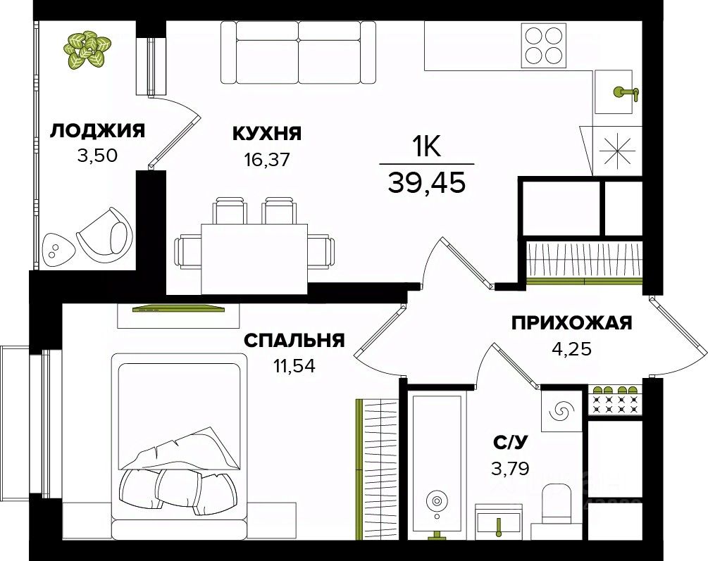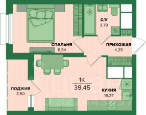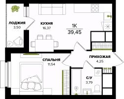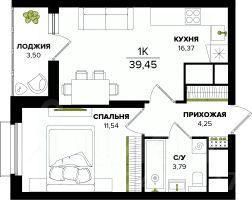 Общая площадь39,45 м²